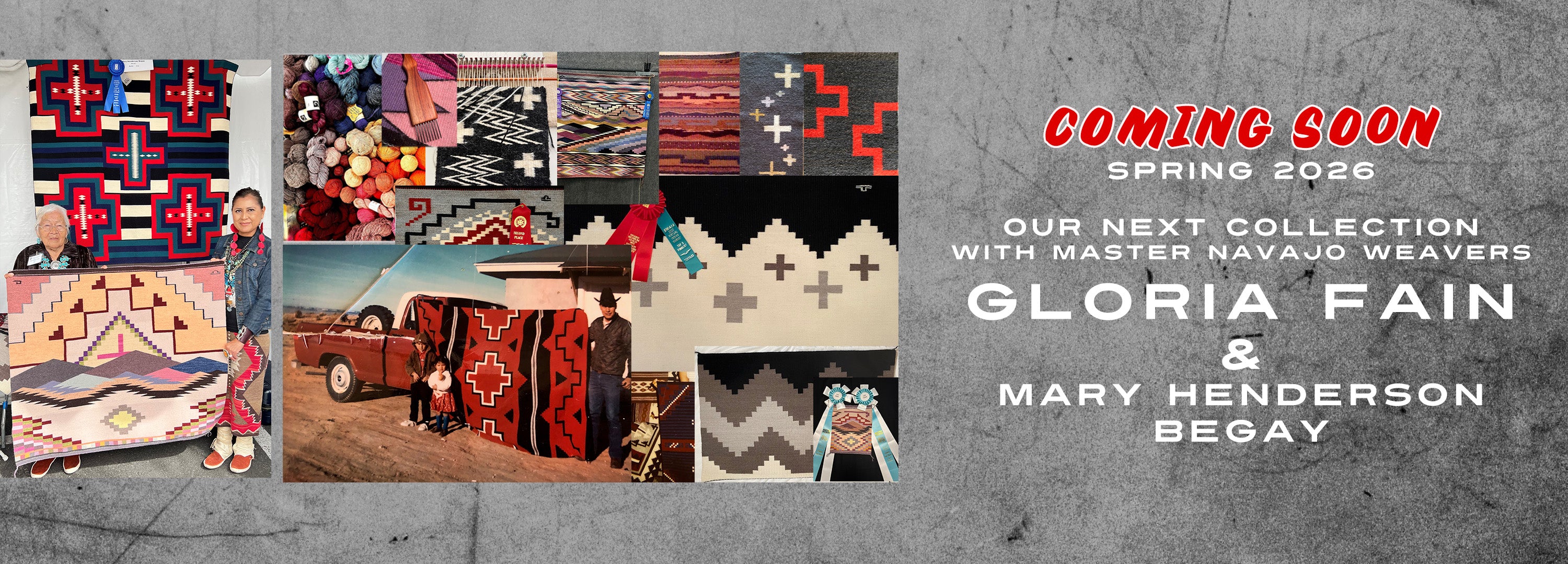 Gloria comes from a prolific line of Master Weavers. She says, “My work is dedicated to the ancestors for making the sacrifice in preserving and teaching their offspring.” She grew up near Ganado Mesa, in Snakeflat. Her family’s clan is Coyote Pass-Jemez Pueblo. And her passion for weaving started early when she was taught by her mother and grandmother to weave at 3 years old. Gloria grew up watching her family shearing sheep, cleaning the fleece, carting, hand spinning and vegetable-dyeing wool.