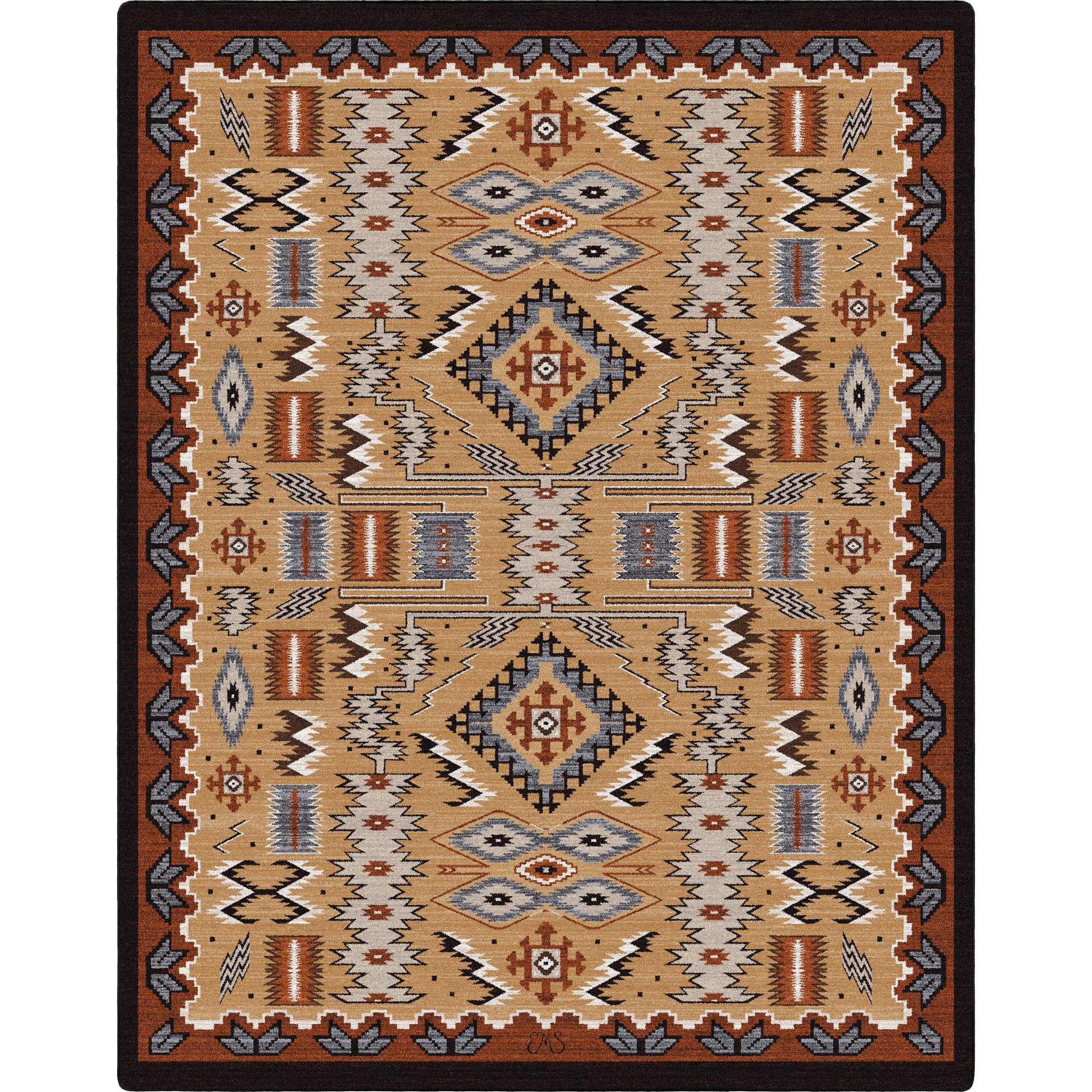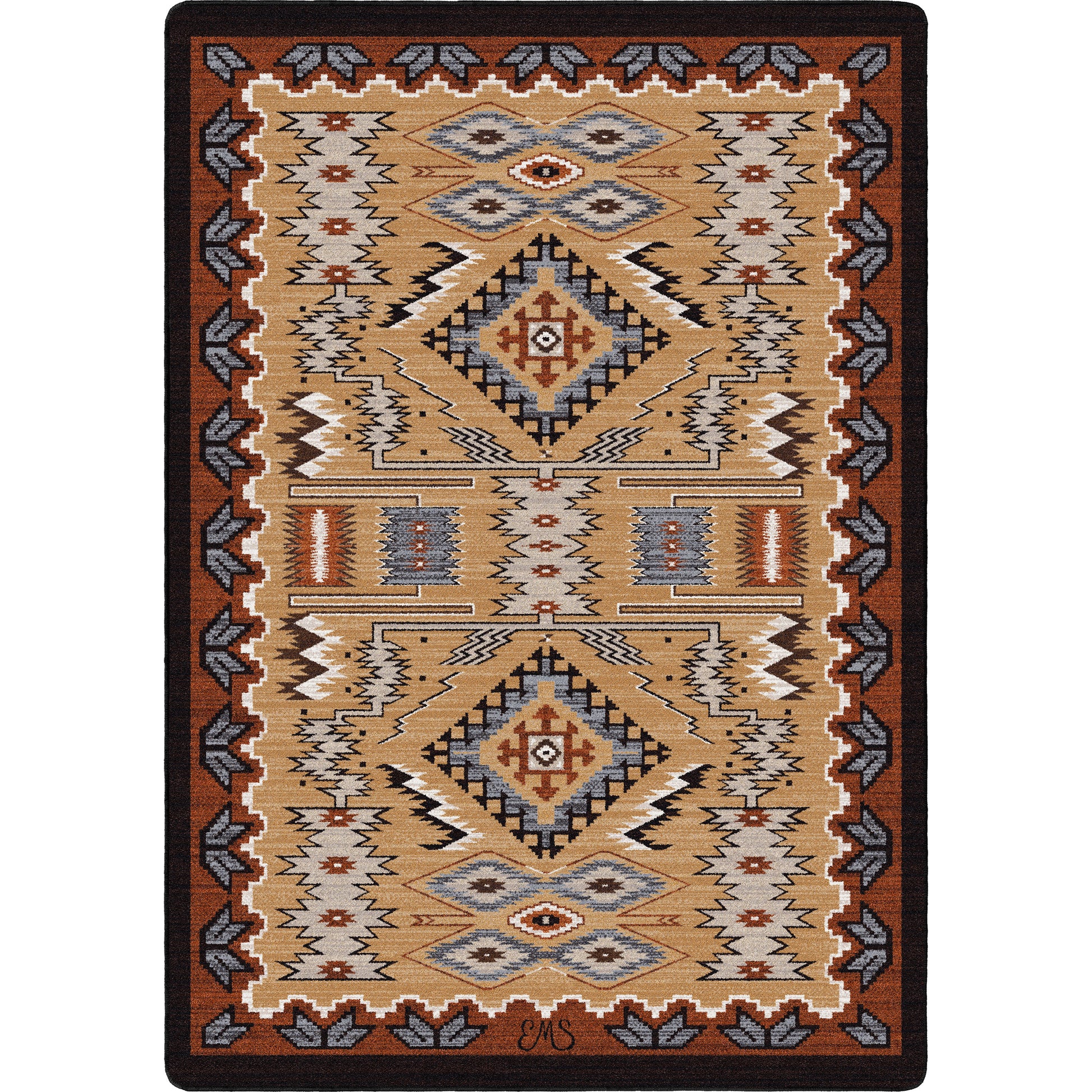 This one is dedicated to my mother. Without her teachings, I wouldn’t be who I am today with my weavings. When I was a teenager, my mom taught me the basic block textiles that could form a rug. When I started weaving I thought about all the designs she would create. I added her touch of two grey hill colors. As I also added a colorful shade of yellow to make the design pop. I made sure everything would be perfectly squared as I got to my middle design. Just as my mother would do to her weavings.