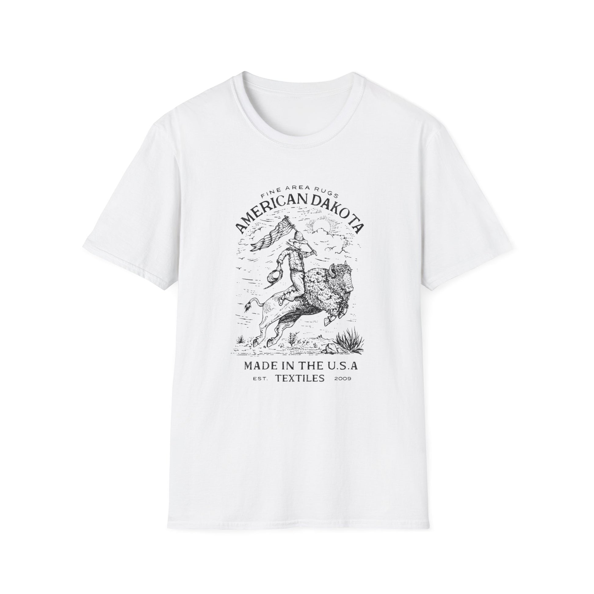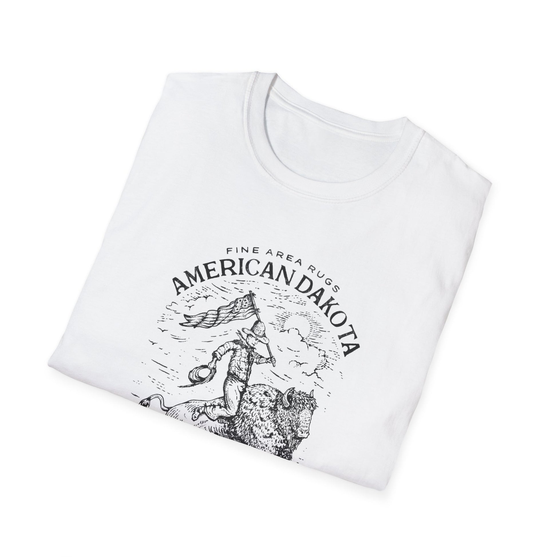 A light, breathable tee that feels like a favorite from the first wear. The soft, ring-spun cotton has a smooth hand that holds detailed prints beautifully—here shown with a vintage-inspired American Dakota illustration that reads like a page from a traveler's journal. The crew neckline and classic fit keep the silhouette clean and easy to layer under jackets or over flannel. Wear it on road trips, at small-town fairs, or when you want a quiet nod to rugged, open-country style. Subtle natural flecks appear on the Natural color for a lived-in look; all shirts come with a tear-away label for added comfort.