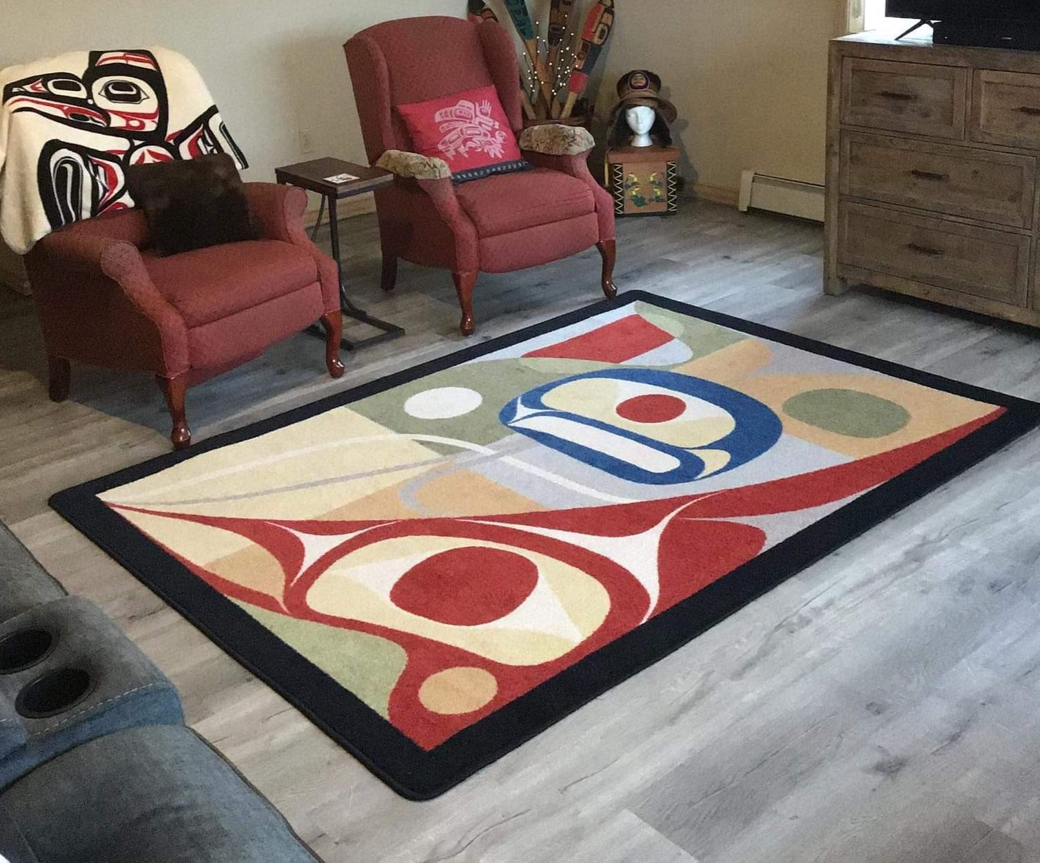 Rande Cook Kwakwaka’wakw explores and combines traditional and contemporary styles, and in doing so creates his own unique approach to Indigenous contemporary art. These rug designs are based on original art works.