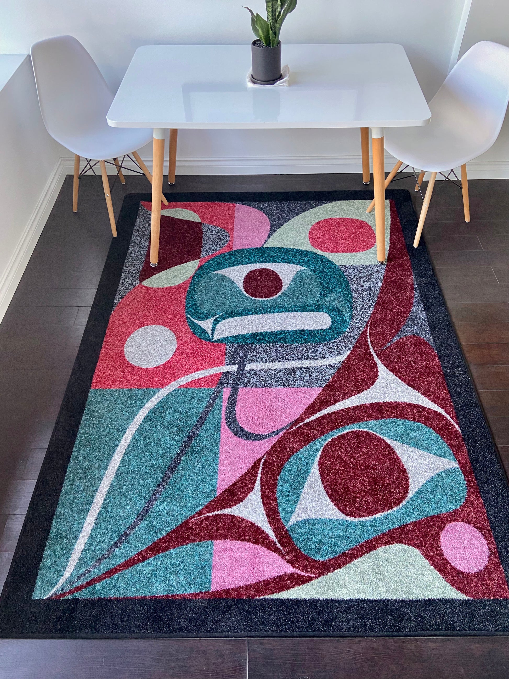Rande Cook Kwakwaka’wakw explores and combines traditional and contemporary styles, and in doing so creates his own unique approach to Indigenous contemporary art. These rug designs are based on original art works.