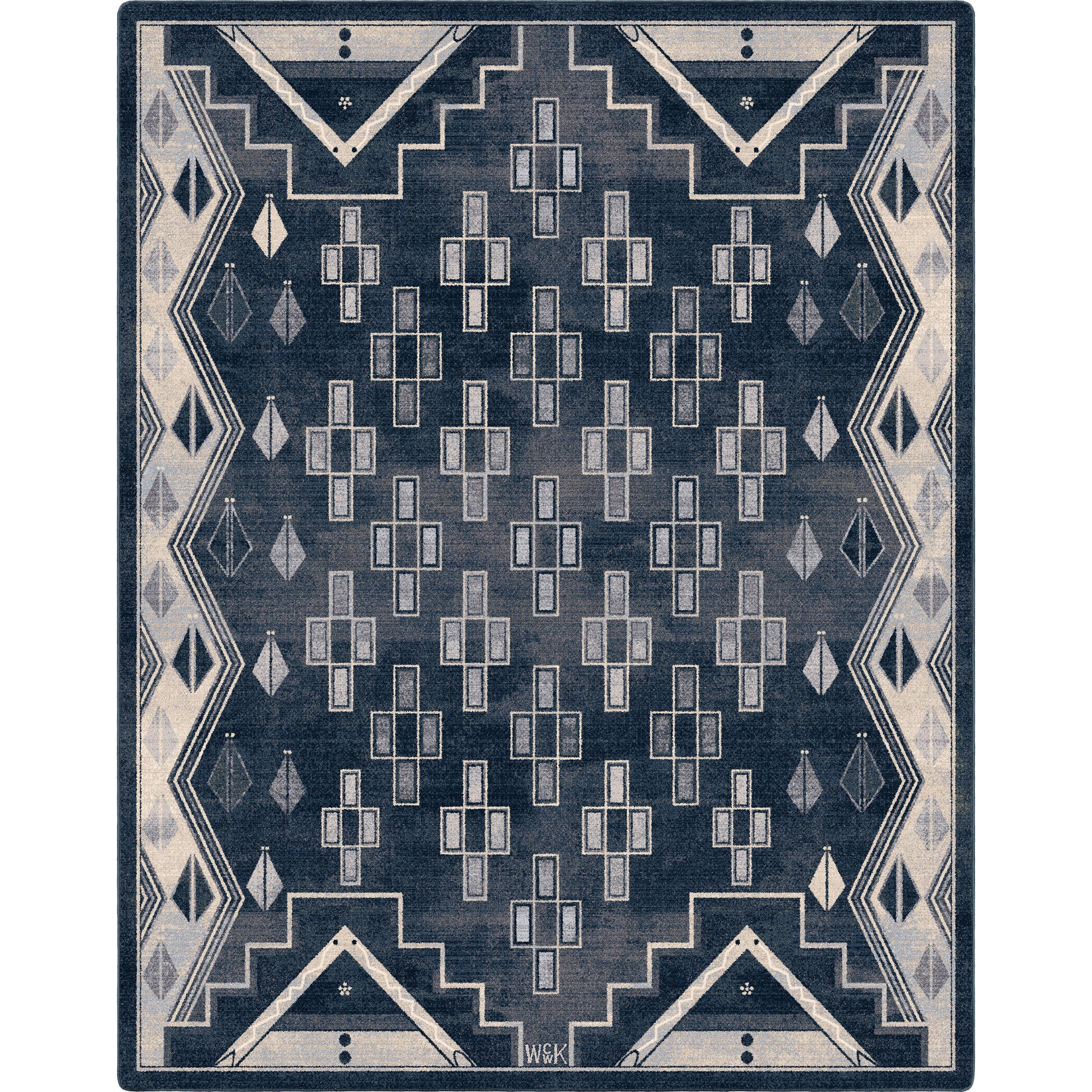 Willow's description: "The Peak to Peak design is reminiscent of living along what we Blackfeet reference as the backbone of the world or more commonly known as the Rocky Mountains. The mountains are endless and so is the night sky and the stars that illuminate it. The symbol for stars can remincess a cross but they are in reference to the night time stars. The Buffalo tracks along the sides are to honor the presence of linni (buffalo) in that space."