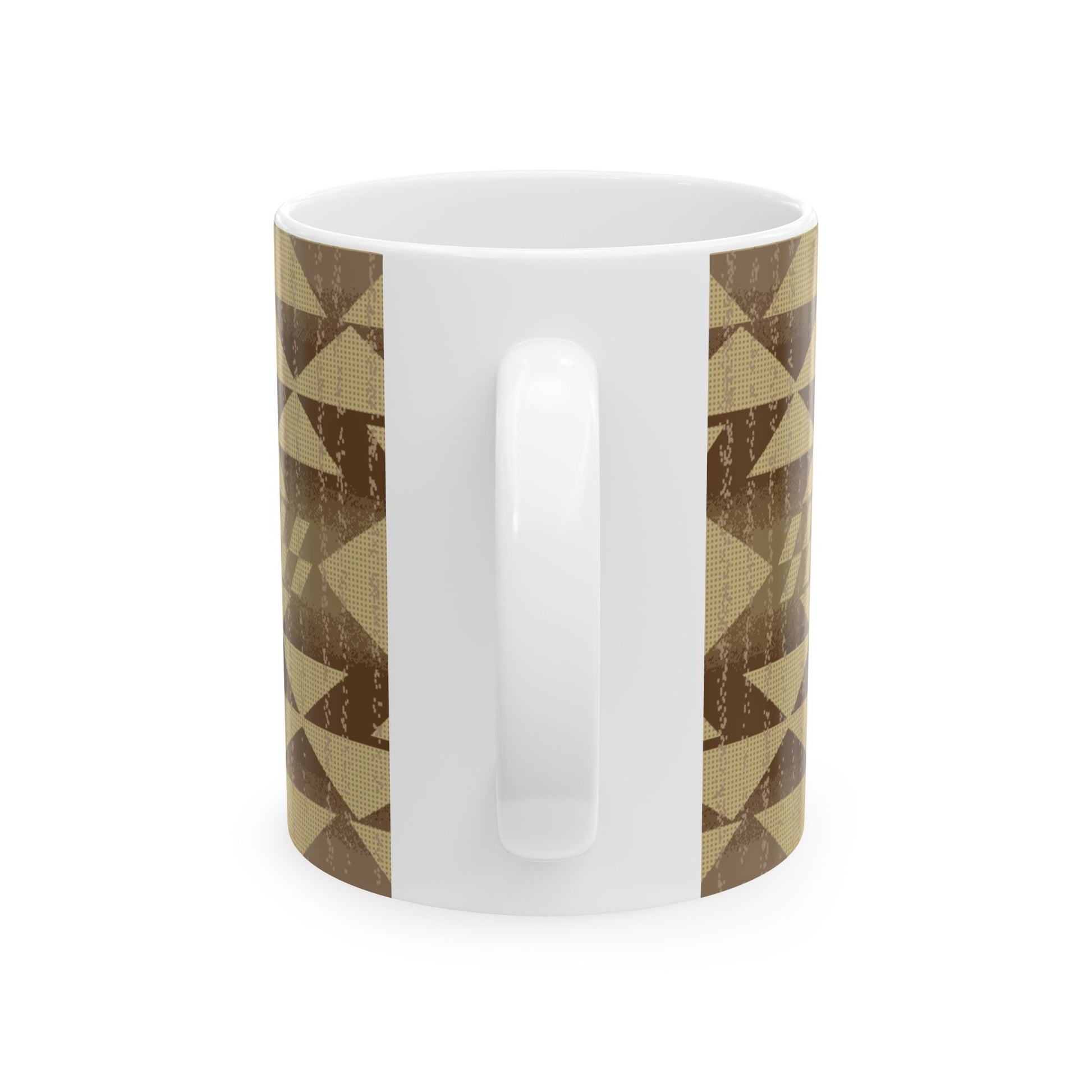 Wrap your morning ritual in warm, earthy geometry. This electrifying Rustic Cross pattern of the Southwestern Indigenous communities is sure to kick-start your morning—rust reds, deep greens, and sun-washed creams arranged in rhythmic diamonds and crosses. It feels like a quiet cabin sunrise or a road trip pause at a desert overlook: grounded, soulful, and quietly bold. The balanced C-handle sits comfortably in hand as the pattern wraps around the cup, bringing color and texture to coffee breaks, late-night study sessions, or conversations around the table. For someone who loves handmade vibes, travel-worn textiles, and designs that nod to traditional weaving, this mug adds a tactile, nostalgic presence to everyday moments and seasonal gatherings.